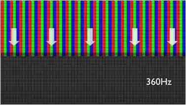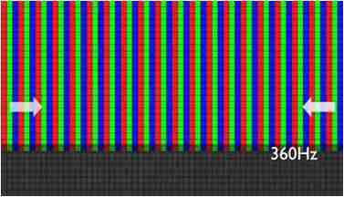 传统液晶驱动是从左到右单向进行,,,在画面更新速度愈来越愈快的情况下,,位于驱动线路末端的右下角区域,,画素的闸极来不及在短时间内获得足够电压,,,无法显示出正确的颜色资讯。。 |